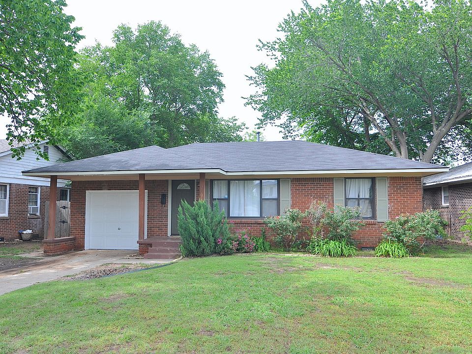 Adorable Village home for sale - great curb appeal with brick exterior and landscaped beds. Living room features wood floors and lots of natural light streaming through an abundance of windows. Updated kitchen has newer cabinets, recessed lighting, granite counter tops, white subway tile back splash, stainless steel sink and dishwasher, newer gas range and mounted microwave/hood vent. Two bedrooms with ceiling fans share an updated hall bath. Updated air conditioning, electrical wiring, plumbing, and roof. Storm shelter! Garage partially converted for indoor laundry room. Don't miss this one!