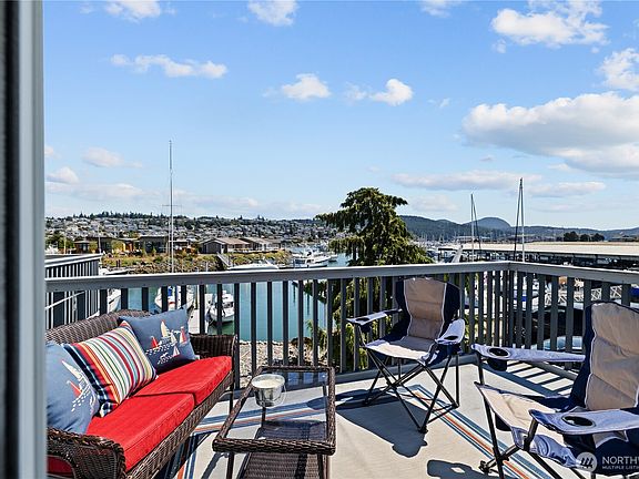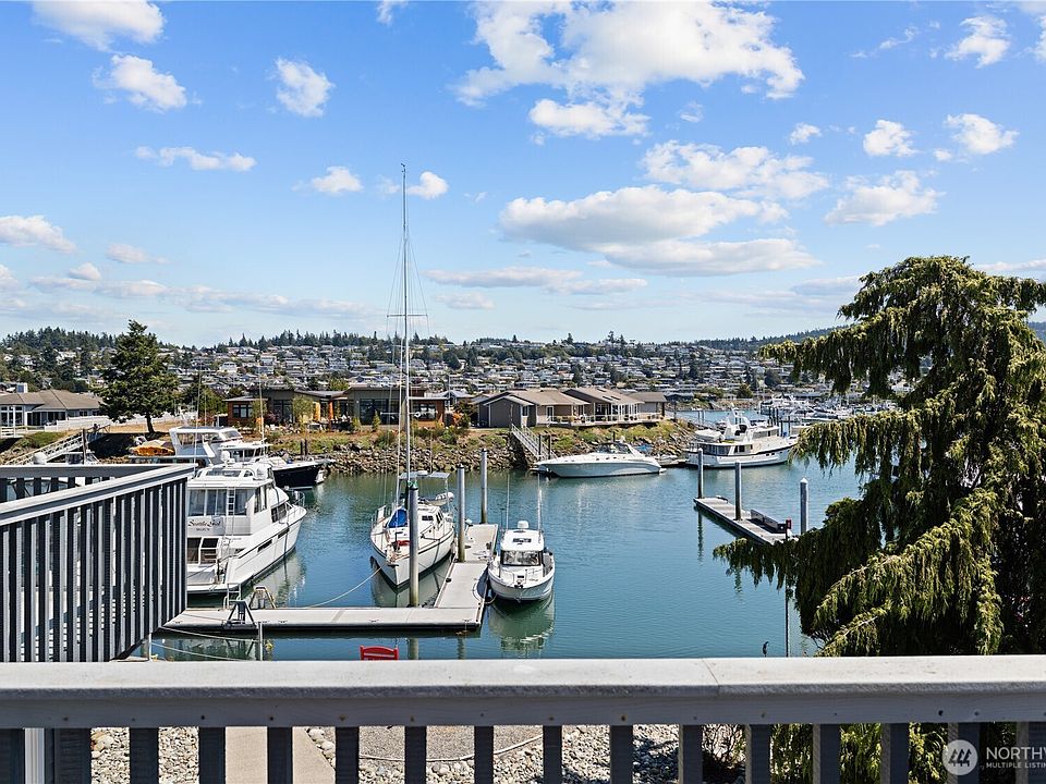 Waterfront Skyline Condo with 25-foot Dock! Perfect for weekends or full-time living on the water. This Fully Furnished, Top floor, Corner unit is surrounded by windows overlooking Skyline Marina and filled with natural light. Marine Views from Kitchen, Dining and Living rooms. Enjoy watching the boats, marine life, & Eagles. Open the glass slider and smell the salt water from your deck. BBQ and entertain from your waterfront balcony. Jump in your boat to go crabbing or fishing anytime! Walk to Washington Park, includes Beach Access. Clean, light & bright with furniture included, move-in ready. Gated entry and enchanting courtyard w/Fountain. One car garage + parking space, & separate storage closet. HOA’s include Water/Sewer/Garbage.