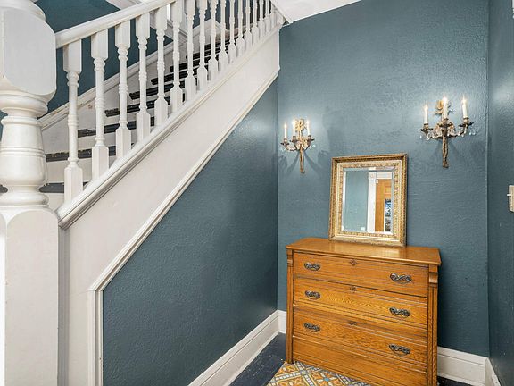 Step into timeless elegance with this beautifully maintained Victorian duplex, lovingly cared for by the same owner for over 20 years. The main unit welcomes you with an impressive entry and statement staircase leading to a private primary bedroom. On the main level, a cozy living room with new gas fireplace insert (2024) flows into a formal dining room with vintage built-ins and a sparkling glass chandelier. The spacious galley kitchen offers ample cabinet space, single-basin stainless sink (2022), and new Viking range (2024).