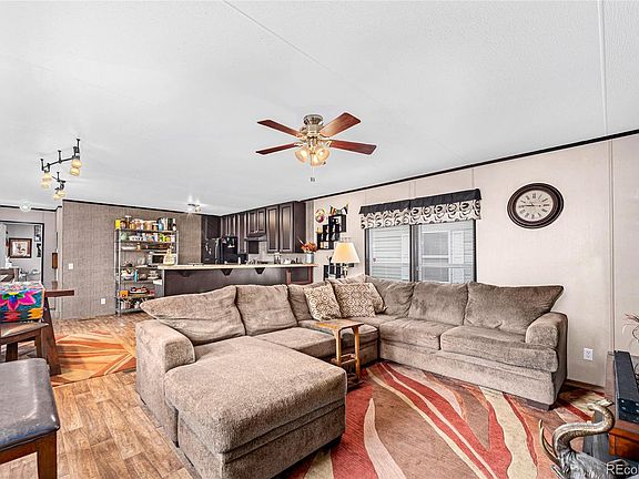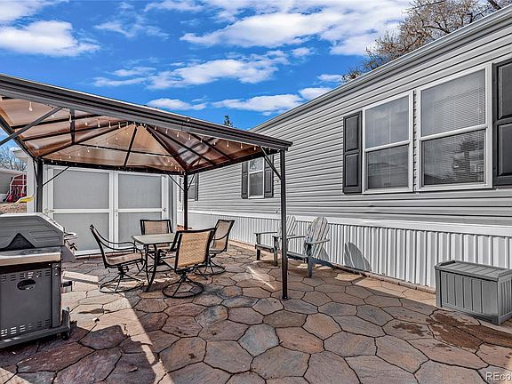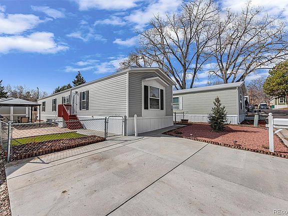 This 3 bedroom 2 bath Clayton manufactured home was built in 2015 and is located in a beautiful community in Federal Heights, CO. This amazing community has much to offer for its residents. They offer planned social activities, on-site staff, boat/RV storage, Fitness Center, laundry facilities, library, clubhouse, billiard room, whirlpool spa, recreational facilities, & a swimming pool. This age-restricted community only allows residents ages 40+ and is strictly enforced. The home features numerous modern updates to include an open floor plan, walk in closet, twin sinks in the master bath, garden tub, laundry room, and central AC. The exterior features fully fenced and low maintenance yard with a beautifully paved patio, great for entertaining. The exterior also includes a large storage shed and two car off street parking.