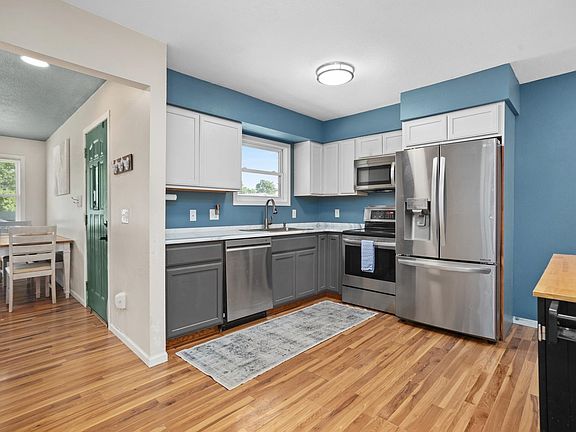 This charming, modern ranch home offers comfortable living with a spacious fenced backyard and an attached single-stall garage. Step into a bright and welcoming living room, where large windows flood the space with natural light. The kitchen has been beautifully updated with stainless steel appliances, modern cabinetry, stylish lighting and marble countertops. The main level features three well-sized bedrooms, including a spacious primary bedroom with double windows and an updated full bathroom. The lower level expands the living space with a versatile family room that’s perfect for gatherings or movie nights. You’ll also find two additional bedrooms—one with an egress window and one without—plus a spacious 3/4 bathroom for added convenience. The tucked-away laundry area keeps everything organized and out of sight. Outside, the large yard with mature trees provides ample space for outdoor activities, and the extra parking is a bonus. Located near shopping, dining, and parks, this home is ready for you to make it your own. Contact your Realtor today for a showing!