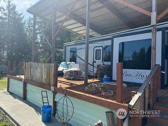 Welcome to pure serenity with over 5 acres with lake frontage in Shelton! 42' RV with deck is included-even the furnishings! Stay in RV while you build your dream home or use it for your private getaway and enjoy the quiet and solitude of this beautiful property. Septic, well, and power are all on the property and ready for your plans! The shed has been made into another living area with power and a wood stove. This property is not to be missed as you are only 18 minutes from town but in complete solitude!