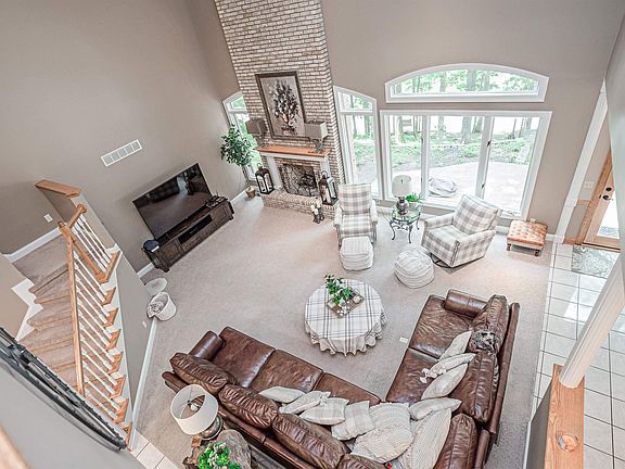 Welcome to this beautiful custom built home featuring 5 bedrooms(including two master suites), 4 full baths, 2 half baths, a finished walk-out basement, and a 3 car attached garage located in the prestigious West Summit Estates on Evansville’s westside. As you step inside the front door you will immediately be greeted by natural light pouring through the large windows that surround the great room and breakfast nook, providing breathtaking views of the sprawling yard and lake. The large great room offers soaring ceilings and a beautiful gas log fireplace and provides direct outdoor access to the expansive deck that overlooks the gorgeous outdoor scenery and the lake, in which the owners will enjoys direct access and ownership to. In addition on the main floor, you will also find a formal dining room w/ a wet bar, a kitchen that showcases custom built oak cabinets including a bar area, main floor laundry room, half bath, office/den, and a main floor master suite that offers a walk-in closet, large master bathroom with double vanities, whirlpool tub and separate shower. Upstairs you will find a second master suite w/ a fully remodeled bathroom and walk in closet, two additional bedrooms that feature a fully remodeled “Jack and Jill” type bathroom with each bedroom having their own private vanity and sink, a second office/den, and an additional room that could be used as another bedroom/playroom. The finished walkout basement allows access to an outdoor patio area and also offers a spacious family room with a full brick fireplace and bar area perfect for entertaining, a large bedroom with double closets(currently being used as an at home gym), a full bath, a utility room, and an additonal room that could be used as yet another bedroom/playroom or craft area. Additional recent updates to note are: new deck(3 yrs), new windows(2 yrs), updated HVAC within the past 5 years. Seller is also offering a home warranty for buyers peace of mind.
