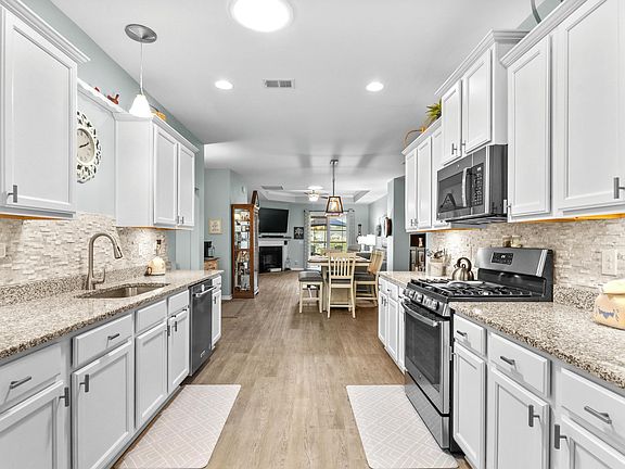Come see this spacious and beautifully maintained condo located in the desirable Palm Lake Garden Homes community a natural gas community! This 4-bedroom, 3-bath home features an open layout with the primary living areas conveniently located on the first floor. Upstairs, you’ll find a large bedroom/bonus room with a full bath and generous extra storage—perfect for guests, a home office, or hobby space. The kitchen is a standout with granite countertops, stylish backsplash, new kitchen faucet, stainless steel appliances, pendant lighting over the sink, solar tube for natural light, upgraded pantry shelving by Coastal Custom Closets, and durable LVP flooring that extends throughout the downstairs. Plantation shutters add timeless charm to every window. The family room offers another solar tube for added brightness, Fireplace with granite fireplace shelf, LVP flooring, a screened porch with Easy Breezy door windows, tile flooring, and a sunshade for year-round comfort. The primary suite features a tray ceiling, LVP flooring, and a thoughtfully upgraded master bath with double-sink vanity, tiled shower, and custom linen closet shelving by Coastal Custom Closets. The laundry room also includes upgraded cabinetry for additional storage and functionality. Additional highlights include a epoxy garage floor with wall cabinets and a garage door screen. Enjoy the lifestyle! Residents of Palm Lake Garden Homes have access to a community pool , clubhouse, and fitness center, perfect for relaxation and staying active without leaving the neighborhood. Don’t miss your chance to own this beautiful, low-maintenance home with stylish upgrades throughout. Call today for your private showing!