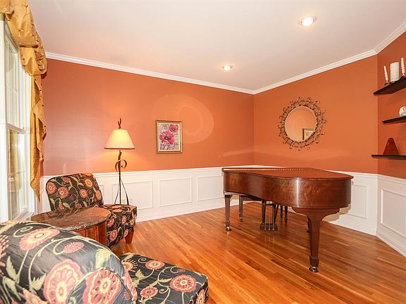 Excellent condition, custom built nestled on over 6 acres in an upscale community on a private drive. Could be 6 BR or extra study or game room. Finished walkout basement with full bath & media room + 70x7 storage area. Three car attached plus car buff's dream detached 3 car garage with high ceiling for lift, heat & 220.