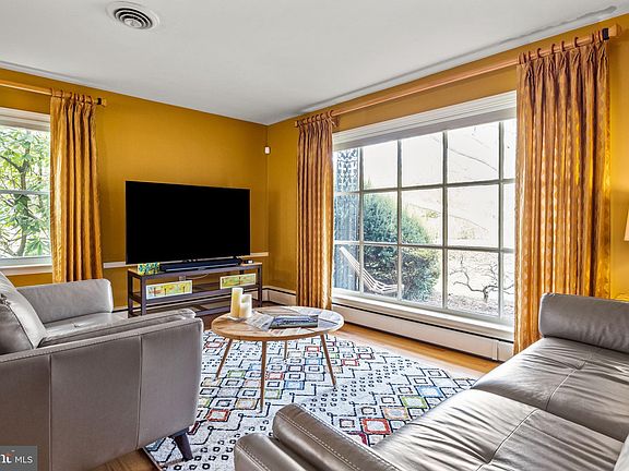 Don’t miss this meticulously maintained mid-century modern style ranch ideally situated on nearly a half-acre lot with beautiful perennials and specimen trees. A meandering stone walk leads you to the inviting front porch and main entry. The large foyer features a convenient coat closet, and gleaming hardwood floors that are carried throughout. A bright living room with picture window, adjoins the dining area that is perfect for sharing a meal with family and friends. The open floor plan continues to the cozy sunroom with slate floor and walls of windows showcasing the gorgeous gardens in the fenced yard. Relax with your morning coffee at the breakfast bar in the bright kitchen offering natural wood cabinets, tile floor and backsplash, and gas range with vent. In the evening enjoy your favorite beverage on the private rear patio. A separate wing of the home includes a spacious main bedroom with updated en-suite featuring a walk-in shower with bright tile and seamless glass doors. The large and sunny second bedroom also offers plenty of closet space and a sitting area. Warm earth tones are featured in the handsome hall bath, which includes a double sink vanity and walk in shower with glass doors. An oversized two car garage provides ample space for cars and your sporting equipment, while the lower level is perfect for exercise and hobbies. Abundant storage space is offered in the walk-up floored attic, which may be finished to additional rooms. This inviting home is conveniently located to the Delaware Canal Towpath for biking and walking, and just minutes away from bucolic Yardley Borough offering numerous restaurants, coffee shops, and boutiques.