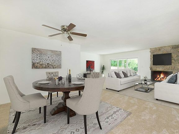 Still time to enjoy the Pool! This four bedroom, 2 bath home was enjoyed for several years by the owner in raising the family and in retirement. Located near the cul-de-sac side, in an area that has had several newer, larger homes built or remodeled, the neighborhood is serene and maintained. The living area is open providing natural light and a spacious feeling. The bedrooms are good sized with closet space. The home has been freshly painted in neutral colors and has new carpeting. Dual pane windows have been installed. The laundry area is conveniently located near the kitchen. The pool is ready for summer fun. While the new owner may want to update kitchen and baths, this home is ready to move in while making plans. Several fruit trees enhance the yard space and provide good fresh fruit when in season. Two pictures have virtual furniture and fire in fireplace.