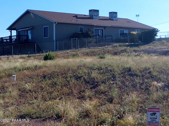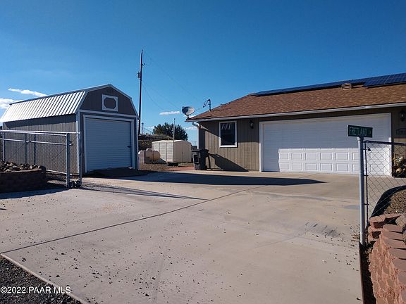 Panoramic views in all directions! Home & RV area on double lot plus double lot w/septic to rear of home included. 3 bedrm, 2 bath, lovely gas fireplace in living rm. Liv Rm flows to spacious dining area & kitchen w/lots of cabinets, storage space, pantry & breakfast bar. Insulated 2.5-car garage w/utility sink, workspace & 220 Electric. Two HVAC units, new roof in 2017. Chain link fencing, RV gates plus hookups. Newer 10x20 Shed, separate fenced back yard. Newer siding & exterior paint. Leased solar panels, Security Monitoring System, TV & speakers in Bonus Rm stay. Propane to be prorated in escrow. New 40-gal hot water heater in 2018. Please consider First Equity Title in Prescott as they have already started on title work & they offer a discount on escrow fees to both Seller & Buyer