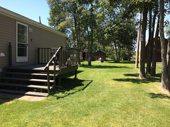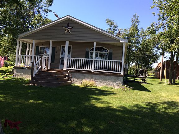 YEAR ROUND and well cared for Double-Wide Mobile Home with drilled well (no lake water here). Located in desirable Point Peninsula. Your summer fun awaits with fishing, swimming, boating and restorative Lake Ontario views. Waterfront deck has electric available and a lovely shade tree. The cement ramp is ready for a rolling dock and or slide in a few kayaks. Open floor plan with 2 large bedrooms and 2 full baths, 3rd room could be additional bedroom, den or office space. Plenty of storage in both the walk-in master bedroom closet and the laundry room. 2 outdoor sheds for storage and plenty of parking for friends and family visitors. The covered front porch is waiting for you to grab a cool iced tea and sit for awhile. Your family's summer memories are going to be made on South Shore Rd!