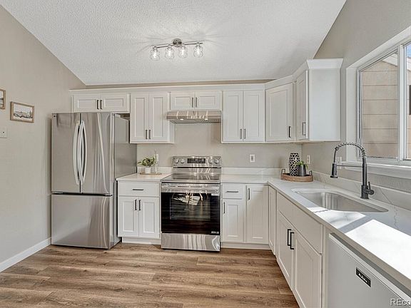 Stunning remodel at a great price point, located in the Fox Hill community! Brand NEW kitchen including NEW shaker cabinets, NEW quartz countertops, NEW stainless steel appliances, NEW sink, NEW faucet and NEW lighting! NEW bathroom vanities with NEW quartz countertops and NEW fixtures! NEW luxury vinyl plank flooring, carpet, interior paint and lighting throughout! Newer roof and AC! Interior boasts 4 conforming bedrooms and 3 living room spaces! Spacious, private, fenced yard! Great location...highly sought after Cherry Creek School District, walking distance to Fox Hill Park and Toll Gate Creek Trail, close to Quincy Reservoir, plus easy access to 470, Southlands, shops and restaurants!