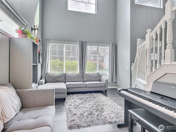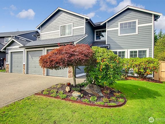Situated on a Quiet Greenbelt, You Will Find This Great 4 Bed, 2.5 Bath Home in the Gated Community of The Buttes in Orting. Features include a 2-story entry, 9' ceilings, hardwood floors, a tray ceiling in the formal dining room & a fireplace in the family room. You'll love the open kitchen with tile backsplash, island with breakfast bar, SS appliances and pantry, the formal and informal living & dining areas. Upstairs through the French doors, you will find the huge primary suite with vaulted ceilings, an ensuite bath with jetted tub & walk-in closet; plus a large bonus room, 3 additional beds & a bath. Outside, you will find a 3-car garage, large fenced backyard with an extra-large patio with a built-in firepit for entertaining & shed.