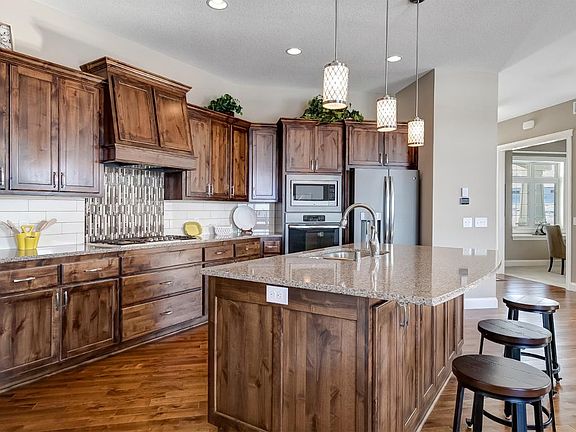 This custom built Rambler features all living space on 1 level. Huge gourmet kitchen w/custom cabinets, granite counter tops, slate app, HW floors, tile backsplash & an enormous island. The lg family room, with FP, is open to the dinette & kitchen that makes this floor plan great for entertaining. Large master suite with beautiful in-suite bath & huge W/I closet. The lower level is finished with 2 more bedrooms, a bath & large recreation room wet bar. A 12x12 deck is included in the sale price.