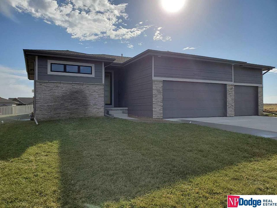 Distinctive two bedroom ranch plan, the South Pointe. Great use of space. Lots of storage. Great room open to kitchen and dining for a great entertaining space. Park in the spacious three car garage and enter the drop zone. Go on into the laundry, Closet and master bath with walk-in shower, dual sinks and separate water closet. Kitchen features spacious island , walk-in pantry, hard wood floors throughout entertaining area. Great room with fireplace, built-in cabinets and bookshelves. Great room open to stairway to lower level ready for your finishes. It's a great home. New Gretna elementary school nearby opening the fall of 2020.