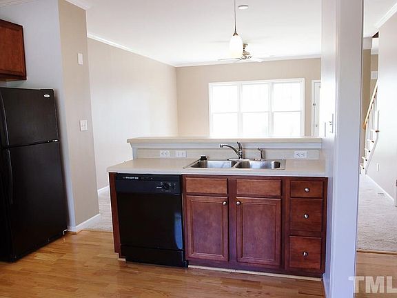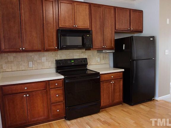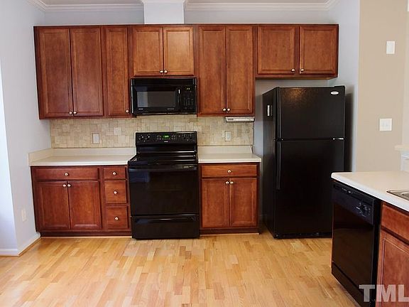 Beautifully maintained original owner of this 2b/2.5ba townhouse w/rear entry garage, fenced in yard, lovely curb appeal! Kitchen features updated tile backsplash, dark wood modern cabinets, and matching 4 piece appliance conveys! Kitchen bar opens to dining/living space with great natural light. Awesome back porch for entertaining, grilling. Two masters up with own full bathrooms. Move-in ready! Minutes to UNC, Chatham taxes, close to RTP, easy walking trails, pool, tennis.