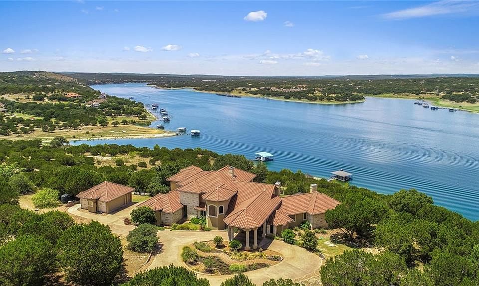 Less than 30 miles from downtown Austin, this Luxurious Lake Travis Waterfront home is surrounded by rolling hills and panoramic lake views. The two-story estate features a gourmet kitchen, game room, executive office and movie theater. Gated community on 11 acres with 270' of waterfrontage - indoor/outdoor living with privacy, an infinity edge pool, attached spa & private boat dock. The spacious great room - vaulted ceilings, floor-to-ceiling windows overlooking the pool and lake. Lake Travis ISD!