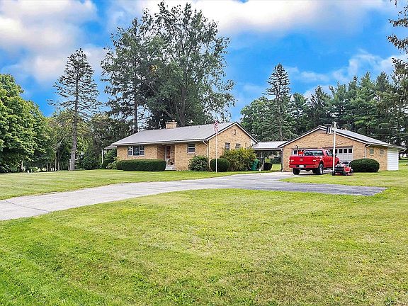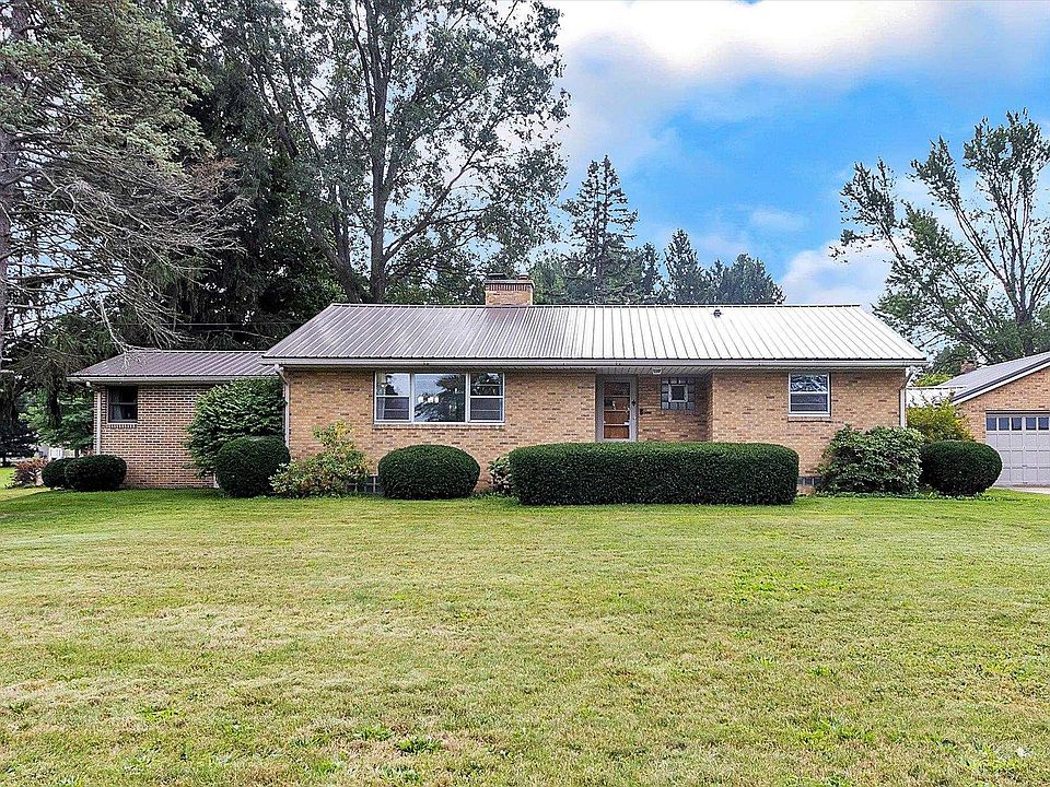 Mid-Century brick ranch on a spacious 1.87 acres with expansive views yet close to shopping and dining. 3 bedroom, 2 full baths. Updated white kitchen and updated baths. Wood floors throughout. Eat-in kitchen with lots of light, and large dining room. Water heater new in 2021. New metal roof in 2020. Wood-burning fireplace. Screened-in porch, and a breezeway. Detached 2-car garage and an additional 2-car garage for all your toys. Basement is clean and dry with separate rec room, workshop, and laundry area.