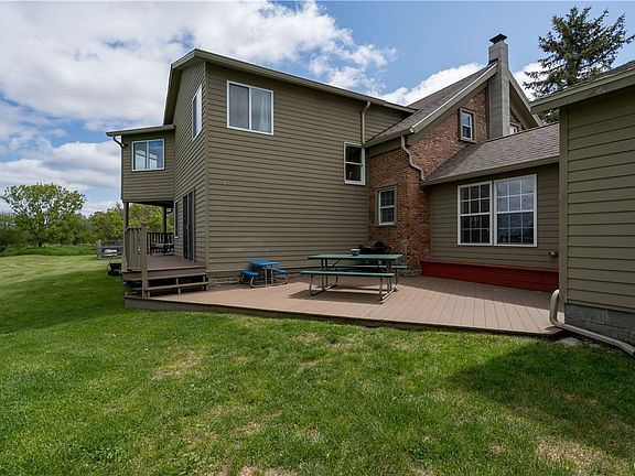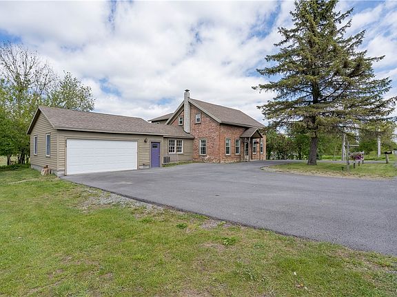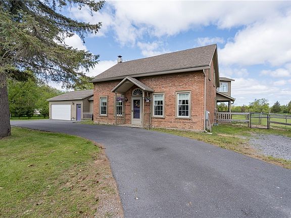 This nicely restored farmhouse is a charming blend of history and modern touches. Featuring 4 bedrooms, 3 full baths, plenty of natural light, hardwood flooring, handsome stone fireplace with electric insert, good-sized mudroom, attached garage, large back deck, paved half-moon driveway with turnaround, fenced-in pet area, super-spacious backyard with pond and treehouse, all on nearly 6 acres of natural beauty! (If desired, the first-floor den could be a fifth bedroom with handicap accessible bath.) And you won't want to miss the stone hearth in the cellar. A hidden gem, preserved from days gone by. This brick beauty is convenient to Ft. Drum and minutes to Sackets Harbor school, restaurants, shopping, marinas and Lake Ontario. An amazing home and price. Public water too! Call today.