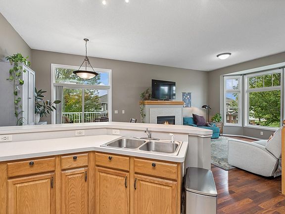 Wonderful 3 bedroom 3 bath townhome with easy access to downtown Lakeville, schools and parks. South-facing end unit with lots of light. Primary bedroom has its own private 3/4 bath and walk-in closet. Lower level has a nice-sized family room and a third bedroom and 3/4 bath. Main level features hardwood floors, vaulted ceiling, gas fireplace and walks out to deck. Quick possession is possible. Priced to sell.