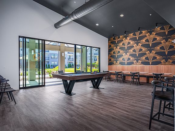 - Exterior features: Business Center, Custom Track Lighting, EV Charging Stations, Efficient Appliances, Lofted Ceilings, Night Patrol, Package Receiving, Pet Park, Picnic Area, Plank Flooring, Quartz Countertops, Rentable Garages & Carports, Soft Close Cabinets, TV Lounge