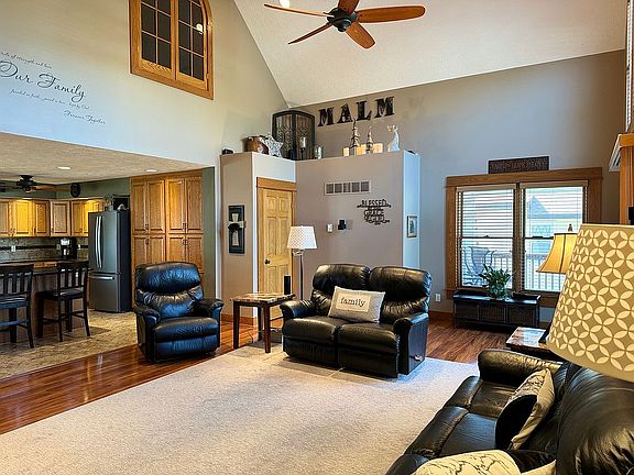 Large family home with lots of upgrades that is move in ready! This home was remodeled in 2012 at that time the house had a complete concrete foundation poured. Underground sprinkler system, self watering planters and flower garden, poured foundation, and an attached insulated, heated, and finished garage. A 350 sq ft wood deck for entertaining with a built in grill, refrigerator, and granite counter tops. There is floor heat throughout the 1st floor, a remote thermostat, solid wood doors, and ample storage throughout. The kitchen features granite counter tops, under cabinet lighting, soft close custom kitchen cabinets, and 2 year old GE appliances. The primary bedroom/bath is located on the 1st floor as well as the laundry. There is a finished attic that could be used as a playroom or for storage and a large finished basement that could also be used for entertaining and storage.