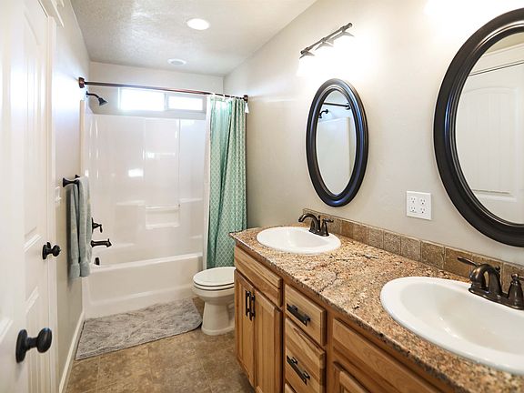 This beautiful 5 bedroom 3.5 bath home has been lovingly cared for and has an inviting living room with vaulted ceilings and a gas fireplace. The primary suite, complete with walk in closet, walk in tiled shower and separate tub, is on the main floor and just down the hallway from the kitchen. Solid wood cabinets, granite countertops and stainless appliances (fridge is brand new) finish the kitchen nicely and the patio doors off the dining room make entertaining on the huge stamped concrete patio in the fenced in backyard a delight. You will find 2 bedrooms upstairs with a jack and jill bathroom and another 2 bedrooms with full bathroom in the basement. The basement also has a spacious family room that is perfect for the kids. With its central location this a must see.