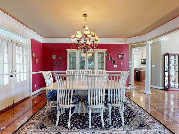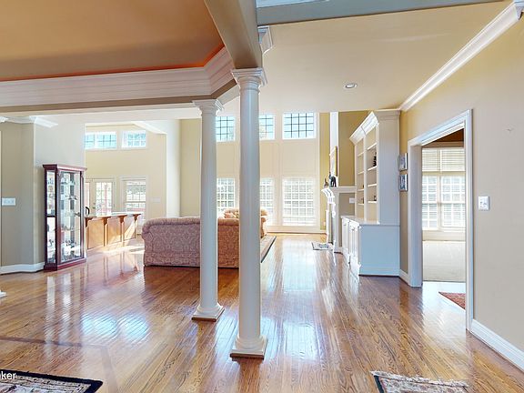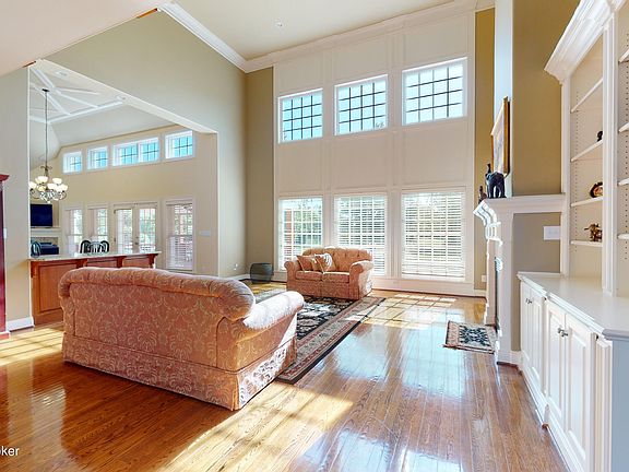 Stately brick, custom designed home in Longwood with a fabulous flat .88-acre private yard ideal for a pool! This lovely home offers gorgeous hardwood floors, an incredible 2- story wall of windows across the back allowing for natural light throughout and an open plan accommodating versatile furniture arrangements. Kitchen features a long center island/breakfast bar with an abundance of cabinet and counter space, double ovens, gas cooktop and pantry. A cozy sitting area is off to one side with a corner fireplace. The covered deck offers a view of the rear yard. A first-floor primary bedroom includes a wall of windows, a lavish bath and spacious closet. From the balcony on the 2nd floor are 3 bedrooms, 1 en-suite and the others flanked by a Jack and Jill bath. Walkout lower level... features two large rooms, one with built-ins and 3rd fireplace, a wet bar area - and the other is large enough for a pool table, exercise equipment and even office furniture! Both access the rear yard. The huge 5th bedroom and a full bath complete the basement area with plenty of storage space in the unfinished section. Large 3 car garage on the main floor with a side entry. Neutral decor throughout! Sellers are offering a 1 year Home Warranty! Longwood includes a clubhouse, pool and tennis courts and is conveniently located across from the North Oldham School campuses.