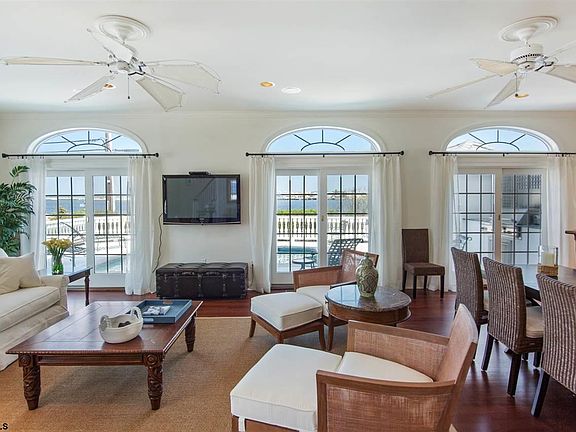 Longport Custom Beach Block overlooking the open bay, the best of both worlds, this extraordinary "British Colonial" styled home is the epitome of casual elegance & features a private in-ground pool & outdoor kitchen area for quiet relaxation & entertainment. Fine craftsmanship is evident throughout, including 7 bedrooms and 7.5 baths, a spacious living room & wet-bar & multiple decks with stunning views of both the open bay and ocean. Beautifully maintained hardwood floors throughout, several media/family rooms, two dens/offices with custom built-in bookshelves and a private master en'suite with sitting area. Located in Longport's prestigious "Point" area - this property is known as a Longport "Classic" located on the corner of 20th & Atlantic Avenues. Enjoy modern conveniences with old world charm & beauty at 2002 Atlantic Avenue, Longport.