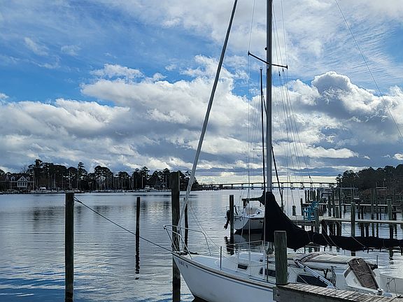 Waterfront, beautiful, walk-in ready townhome on Smith Creek with expansive water views that includes a boat slip. Only minutes from downtown Oriental, this 2 bedroom, 1 and bath home is located within Buccaneer Bay and offers gorgeous solid hardwood floors in the open concept kitchen, dining/living rooms with the bedrooms and bathrooms having tile floors. Replacement thermopane windows, like-new kitchen appliances and washer/dryer included with this rental. Spacious and private waterfront deck and million-dollar views for pennies on the dollar. Walk-in storage with concrete floor underneath back deck that allows parking for golf carts, personal watercraft, bicycles and ample space for a workshop and additional storage. Lockable large storage room on the back deck and a platform lift as well. Water views from every room and all on one floor. Nothin' could be finer! Owner pays HOA fees and boat slip fee. Renters are responsible for utilities, trash, internet.