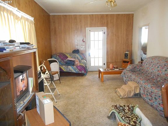 Comfortable two bedroom home on corner lot! This home has a fenced backyard, detached single car garage with power, enclosed front porch, spacious kitchen, laundry room and large living room windows. This charming home is waiting for your personal touches!