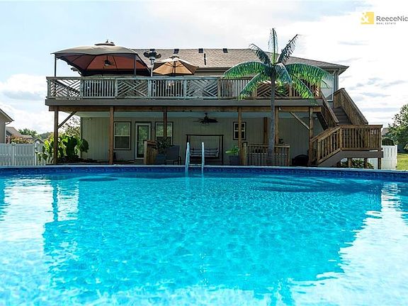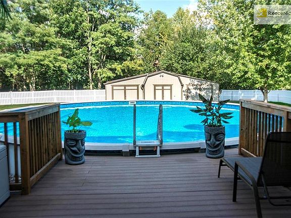 What an oasis-Enjoy your home morning,noon &night.Home has large Kitchen & dining overlooking Liv rm w/Vault ceil & fireplace.Massive entertaining composite deck w/large cabana area& hot tub(built-in Bluetooth & subwoofers),overlooks beautiful solar-heated 33' dia. pool.Main back yard has 5' vinyl privacy fence.This property comes w/ 1.6 acres of treed area if you want.Large family rm w/bathroom walks-out to covered patio w/ fountain access to pool.Triple shed/workshop w/electric&water. Drive has 3rd lane drive.