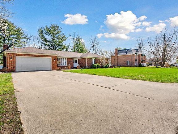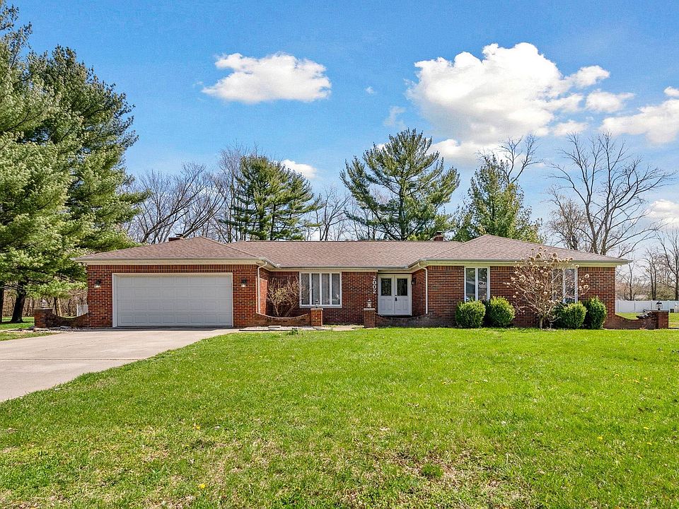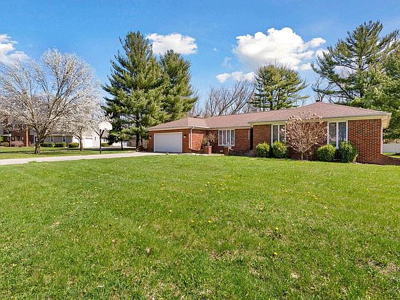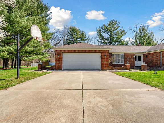 Charming move-in ready rambling ranch with plenty of room for everyone including multiple living spaces, partial finished basement & enclosed back porch with peaceful nature views! Located in a quiet & peaceful area with no through traffic in the Rolling Hills neighborhood just west of IN-15, this 3 bedroom, 2 full bath all brick home is nestled on almost half an acre with many tall evergreen trees offering shade & privacy. Classic yet attractive exterior has select landscaping elements, attached 2 car garage, white accents that pop & mini stately courtyard entrance flanked by lamps. Double beveled glass front doors open to a warm & welcoming atmosphere complemented by lots of natural light. Built in 1980 it retains some style aspects of the period & has been well maintained throughout. Tile floor in foyer links large eat-in kitchen with recessed lighting, abundant cabinetry, SS appliances (plus retro double ovens) & wrap around breakfast bar great for quick bites. Long open concept layout means kitchen is beside casual dining zone next to cozy carpeted living room with floor-to-ceiling stone fireplace to keep you toasty all winter long. Sliding glass doors open to big screened in porch with wood panel ceiling & panoramic back yard views—excellent spot for dining al fresco, grilling or simply relaxing in comfort! Formal dining room off foyer has wood flooring, wainscoting, front facing picture windows & also connects to kitchen, perfect for entertaining! At the other end of the house are all 3 bedrooms. Generous primary bedroom with en suite bath & walk-in closet; remaining 2 bedrooms are both good sized with ample storage throughout. Main shared bath has pretty blue tile floor & tub/shower combo. Spacious lower level has wood panel walls, unique built-in shelves & small daylight windows. Makes for a wonderful 2nd living/family room/home theater with room for a rec area or even home office nook with even more storage. Expansive back yard has tons of space for all kinds of outdoor fun & activities & has a private feel as it packs up to a 6’ fence with lots of trees on the other side. Super convenient area only minutes from US-30 as well as downtown with easy access to nearby shopping, dining & groceries. Pike Lake & Center Lake are close & each has a public beach & park. Don't let this one slip away!