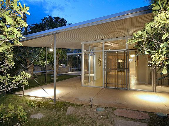 Historically significant Contemporary home, designed by Arthur Brown, sensitively restored & remodeled. Perfectly located in Sam Hughes. Architecturally interesting Hyperbolic Paraboloid Roof. Walls of glass open to a verdant walled yard lushly landscaped that creates privacy, serenity & adds beauty to this already unique property! This wonderful 50's Modern has 4 bedrms & 3 full baths. Scored & colored concrete flrs. Well appointed kitchen w/granite counters, SS appliances, Cherry Cabinetry open to living spaces. Sep Den. 4 ample bedrms & 3 full bathrms. MSTR bedrm includes lavish & private bathrm w/shower, large jetted bath tub, double sinks + large walk-in closet. Outdoor living area has covered patio, outdoor kitchen, gas fire pit, Pebble Tec pool w/Cantera stone deck & 1 car garage.