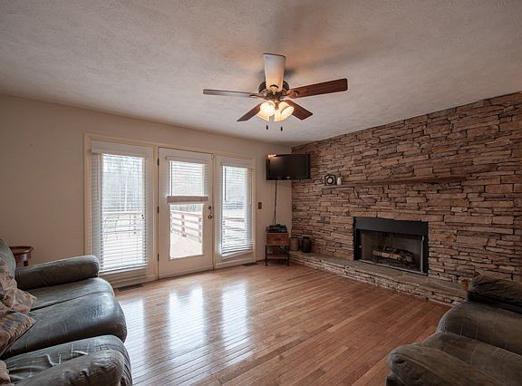 Qualifies 100% financing 4 bedroom 3 bath on 2+ acres! All brick w/rocking chair front porch! Living room with hardwood floors & stone front gas fireplace! Nice size dining room! Kitchen with granite counter top, ceramic tile floor, gas cook top, built in microwave & refrigerator negotiable! Owners suite with huge walk in closet, upgraded vanity top & ceramic tile floor! Big laundry room with room for a freezer! Great deck for entertaining! Fenced yard plus shop/greenhouse & 2 carports for your boat or toys!