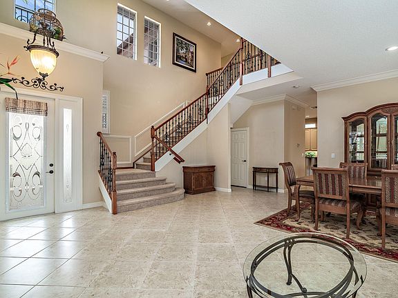 Immaculate pool home located on a lakefront, over sized corner lot! Stunning views from the front and back of the home. Stunning upgrade with hardwood floors throughout upper floors and stairs. Spacious 4 bedroom, 3.5 bath plus loft. Note-one bedroom/bath has a separate entrance-perfect for an office or Nanny. 25 foot ceilings, crown molding, 18'' tile, plantation shutters! The updated kitchen features granite counters, white 42'' cabinets and stainless steel appliances. Light and bright with huge windows. The master suite has a balcony over looking the pool and lake. Pool is in a screened enclosure with a large patio and large summer kitchen. Evergrene is a gated community with a club house that offers resort style amenities. Close to schools, highways, beaches, shopping restaurants.