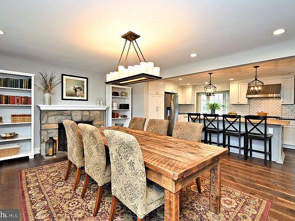 Welcome to 2002 Hilltop Rd in Flourtown! This large colonial home is not to be missed. Enter into the large dining room and you will see beautiful hardwood floors that continue throughout the first floor. This room (which could be used as a living room too) boasts a stone, gas fireplace and large front window to add tons of natural light. Next is the newly renovated kitchen (2019) featuring gas cooking, honed granite counter, tile back-splash, built-in pantry closet and a large island with butcher block counter. There is also a door leading out the huge covered brick patio and deck area. Back inside continue on to what is currently being used as a library, but could also serve as the dining room. Behind the large bookcase is a wine closet with a glass door to display your wine collection and there is a window seat which offers extra storage, this overlooks the large, fenced backyard. Beyond the library is a spacious family-room with sliders to the rear yard. This room is perfect for entertaining and offers a wood-burning, stone fireplace. Off the family-room is a mud room with built in cabinetry for dropping off coats and shoes when you come in this door. A powder-room with gorgeous tile completes the first floor. Heading up to the second floor, the office (or nursery) leads to a large primary suite with a barn-door leading to a walk-in closet, laundry closet and spacious primary bathroom. The bathroom offers a whirlpool bathtub, perfect for soaking after a long day. There is also a walk-in tile shower. Down the hall are 3 ample bedrooms, with the smallest having access to a walk-up attic with flooring for additional storage. These bedrooms as well as the hallway offer hardwood flooring and built in drawers and shelves. Other notable features include a NEW ROOF (2021), newer heater (2015) and central AC (2019). The many beds in the front and back yard will completely fill up with perennials come spring and the backyard is very private! Springfield Township Schools and close to route 309 and PA Turnpike. Conveniently located to local treasures like the Morris Arboretum, Cisco Park, the Woodmere Art Gallery, the Wissahickon Trail, Valley Green, shopping in Flourtown, all of the shops of Chestnut Hill Village are a short walk or drive from your home. Negotiable items include piano, ping pong table in basement, furniture in room with twin beds.