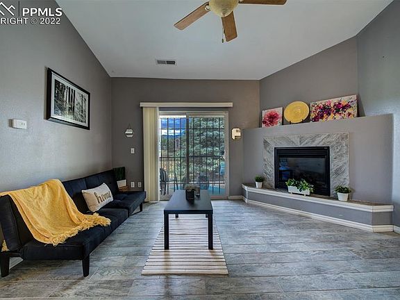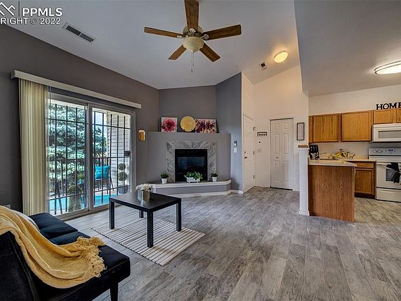 Don't miss your chance to own this beautiful, well-maintained condo in the heart of Colorado Springs! You’ll appreciate the thoughtful updates to this cozy condo which features 2 full sized bedrooms, an updated bathroom, a spacious living room with a gas fireplace to keep you warm at night and a stunning covered patio with unobstructed views of Pikes Peak. Other features include updated light fixtures, new tile laminate floors along with large windows offering ample sunlight. Everything you need is a convenient drive away. Enjoy being close to restaurants, shopping centers, I-25, grocery stores, schools, Tinseltown Movie Theater along with other entertainment. Call and tour this lovely home today!