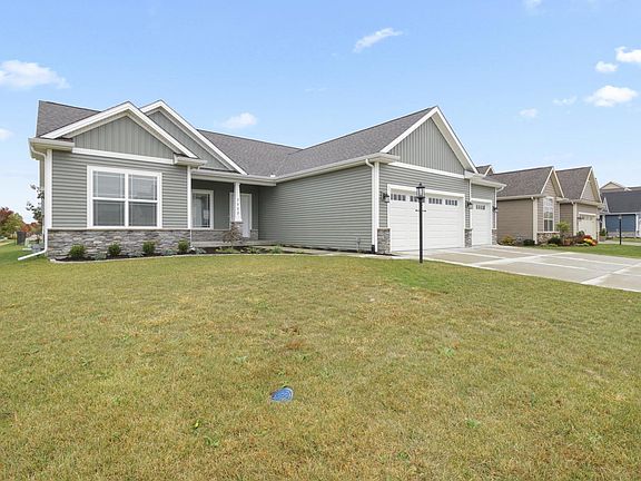 Beautifully kept one story, built in 2019, in "Like New" condition! Welcoming foyer opens to formal living room w/ cathedral ceiling and an eye catching stone fireplace, complete with gas logs. Kitchen with eating bar, has beautiful wood cabinetry, granite countertops, tiled backsplash, and upscale stainless steel appliances. Formal dining room is nearby. Master bedroom adjoins a well-planned master bath, and has a nicely sized walk-in-closet. Two secondary bedrooms sit nearby. Nicely finished basement has a good sized family room with areas for TV plus a pool/tennis table, and well thought out "kitchenette" area, complete with wet bar, microwave oven, and wine cooler. Fourth bedroom with egress window, plus third full bath, and two unfinished storage areas finish out this floor plan. Covered front porch, back yard patio area, three car garage and more. This is definitely one home that will catch your eye!!!