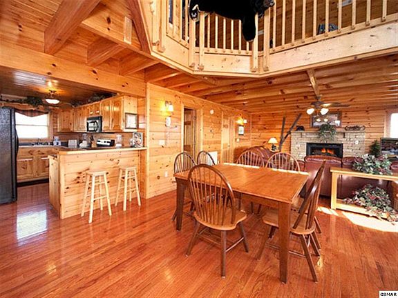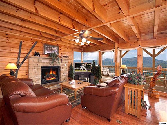4BR/4BA Stunning Log Cabin with panoramic views of Mt. Le Conte located on 1/3 Acre Lot! Windows throughout every Level to enjoy the views and makes the Large Cabin Open and Airy, feel like your Outdoors. There is a fully equipped kitchen with Black Appliances and breakfast bar opening up to dining area and Living Room with the relaxing Gas Fireplace. A deck on each level with picnic table for outdoor dining or a swing and rockers. A Beautiful Spiral Staircase takes you Upstairs that expands to spacious Sitting area and Bedroom with Bathroom with stand up shower & soak in your Luxiourious Jetted Tub while enjoying the views. Deck on this Level has a jacuzzi! Lower level featuring a large game area. This level offers 2 bedrooms both with comfortable beautiful Log Queen size beds and adjoining baths with showers. There is a washer dryer on this level for your convenience. A full-length deck again offers rockers to enjoy the wonderful view. Terrific location less than 5 minutes from Dollywood and Pigeon Forge, and only 15 minutes to Gatlinburg! Centrally located in a Prestigious Cabin Resort with paved, easy to traverse roads with a pool and playground.