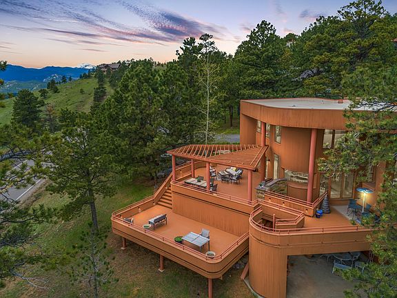 Entertainers Dream! Architectural work of art that provides a fabulous mountain living experience. Modern design, an open concept floor plan, polished hardwood floors, high vaulted ceilings, walls of windows to display mountain and city views. This house has over 1,500 square feet of decks and porches plus an outdoor fire pit that seats 16. Meticulously maintained home with fabulous great room. The chef in the house will love the layout of the kitchen. Dining room with direct access to the deck. Main floor master suite with fireplace plus an additional master suite located on the upper level. Walk out lower level features a family room, bedroom suite plus two additional bedrooms with a shared bath. Montane Drive East is highly sought after for its breathtaking views, privacy, captivating wildlife, and natural beauty. Genesee offers 11 miles of hiking trails, 1200 acres of open space, 2 pools, 4 tennis courts & award-winning schools.