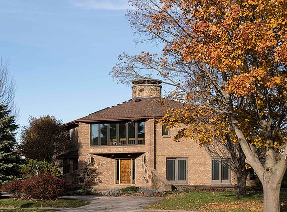 Originally custom designed and constructed by a mason, this home boasts all brick and stone exterior construction. Inside, the soft contemporary architecture features as its centerpiece a circular stone chimney that rises from finished basement to above the roof, featuring fireplaces in the basement family room, the 1st floor living room, & master bedroom. Other highlights include 2x6 construction, Pella windows, dual HVAC systems with separate zones for the 1st & 2nd floor, & hundreds of square feet of custom 3/4" oak flooring. The meticulously designed floor plan is infused with abundant natural light & the layout accommodates entertaining guests with ease. Adjacent lot available for purchase for $39,900. New roof w/transferable warranty in 2014. See 3D immersive tour!