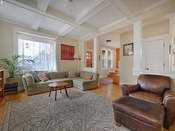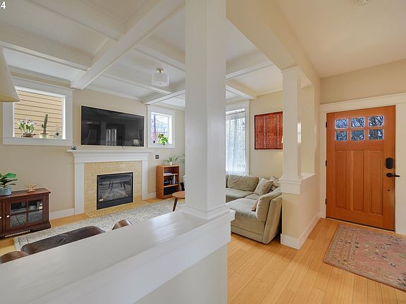 Welcome to this vintage reproduction in the Humboldt/Overlook neighborhood! Built in 2009, this home beautifully captures the essence of a classic Portland craftsman foursquare. The main floor has lovely bamboo floors that lead you through spacious formal rooms. The dining room has box beam ceilings and elegant pocket doors, setting the stage for memorable gatherings. Cozy up in the inviting living room next to the fireplace, perfect for relaxing evenings. The chef's kitchen is a culinary enthusiast's dream, featuring new high-end appliances and a custom pull-out wood cabinet extension for added convenience. Friends and family can sit at the bar and chat while something delicious is on the stove. Upstairs, three bedrooms await, including a primary suite with a soaking tub, separate walk-in shower, and a generous walk-in closet. The guest bath, laundry and extra closets are in the upper hallway. The finished basement has super high ceilings and offers versatility, with the potential for a fourth bedroom, a home office, or a bonus/media/family room to suit your needs. The deep two-car tuck-under garage provides ample space for parking and storage. Outside, the enchanting fully landscaped outdoor space beckons with a serene koi pond, a cascading waterfall feature with a charming bridge, a covered pergola, and a greenhouse. Across the street, the Beech Elementary school playground and field offer endless opportunities for picnics, dog walks, or leisurely games of frisbee with friends.