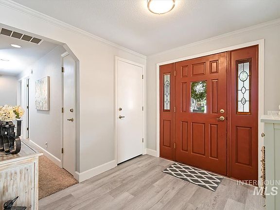 TRANQUIL BACKYARD OASIS next to 9-mile creek—take in the sounds of soothing year-round running water while lounging on the private back deck overlooking the manicured parklike setting! Situated in a convenient location just minutes from the 10-mile interchange, services & just a short walk to Château park. Interior features of this move-in ready home include neutral paint colors, durable prefinished plank flooring, skylights, large bedrooms & a great room design—perfect for entertaining. The spacious kitchen offers recessed lighting, stainless steel appliances (refrigerator included), tile backsplashes, a breakfast bar & an abundance of cabinet space with pantry while the oversized master retreat holds a large wardrobe room, walk-in shower & private backyard access. Fully fenced exterior grounds presenting an inviting entryway with water feature, automatic sprinklers, mature landscaping, a secondary patio/sitting area and dog run. Updated air conditioner & water heater--see virtual walk-through in tour link!