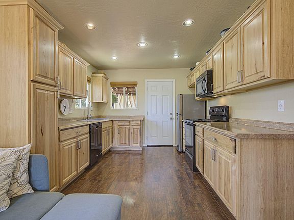 Immaculate, well maintained 2 bedroom, 1 bath home nestled in a quiet Cul-De-Sac. Great for a weekend getaway or full time living, this home has tongue and grove vaulted ceilings in the living room, lots of cabinets in the kitchen, and has been updated (including all new dual pane windows). In the fully fenced backyard, you will find a private deck, lots of room for gardening plus a workshop. In the front yard, you will find a newer carport, RV parking, and a porch to enjoy the cool mountain evenings. The entire property has been fire wised. Home comes furnished. Come and check it out today.