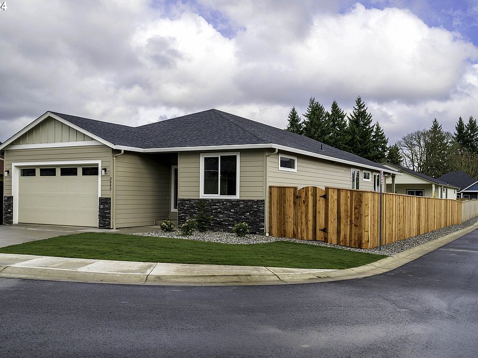 Move-in Ready 3/5/24 in Quaint Felida Neighborhood! 3 Beds, 2 Baths, ADA-Friendly. This home offers a spacious and inviting environment with wide doors and halls. The island kitchen boasts white soft-close cabinets, quartz countertops, an electric cooktop, a built-in oven & microwave, and a full backsplash, blending style with functionality. Luxury vinyl flooring throughout ensures durability and attractiveness. The great room features an LED fireplace with thermostat control, complemented by built-ins for extra storage. The primary suite offers a spa-like experience with a fully tiled roll-in shower, and both baths feature quartz counters. Modern amenities include a media hub, smart locks, ceiling fan, prewired bedrooms, and great room with upgraded CAT-6 and coaxial cables for easy streaming. The fully finished garage and covered patio enhance the living experience. The landscaped yard with a sprinkler system and fenced outdoor space is ideal for entertaining and relaxation. Standard in this Premier Essentials Felida neighborhood, this home prioritizes comfort without the need for special requests.