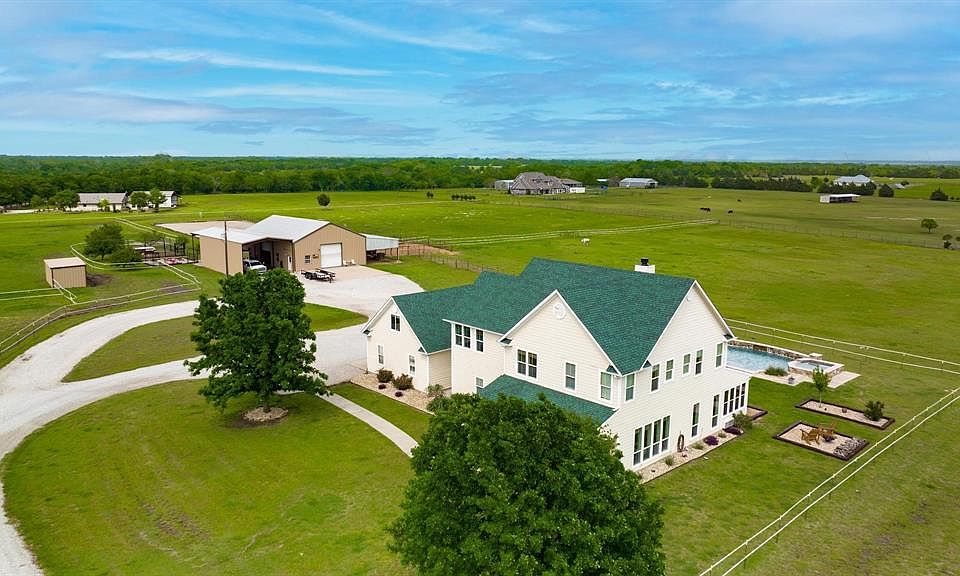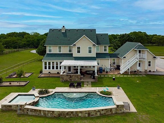 Come home to the Country for the Peaceful nights and amazing views by day.Equestrian Estate is about an hour to Dallas.Located in desirable Van Alstyne this Custom Built home is made for entertaining from the covered porches,pool w-hot tub,fire pit and outdoor kitchen,Man cave above the garage.Bring the Kids,4 Wheelers,Dirt Bikes and Horses,Imagine all your Family gatherings on this Beautiful Acreage.Grow your own Farm to Table with the vegetable garden,fruit trees,fresh eggs w-your chickens and chicken coop area.40x60 Fully insulated barn with power,water and 50amp hookup,Four 12 x 12ft European style stalls fully matted and w-individual fans.Tack room,half bath w-hot-cold water,Feed room,Horse wash area with hot-cold water:Tankless HWH,Freestanding 12 x 24ft run in shed-field shelter.International sized 200 x 70ft riding arena w-Premier Equestrian footing, as used in commercial horse facilities such as Texas Rose Horse Park in Tyler.4 bedrooms 3 full baths,3 half baths.2.5 Garage.