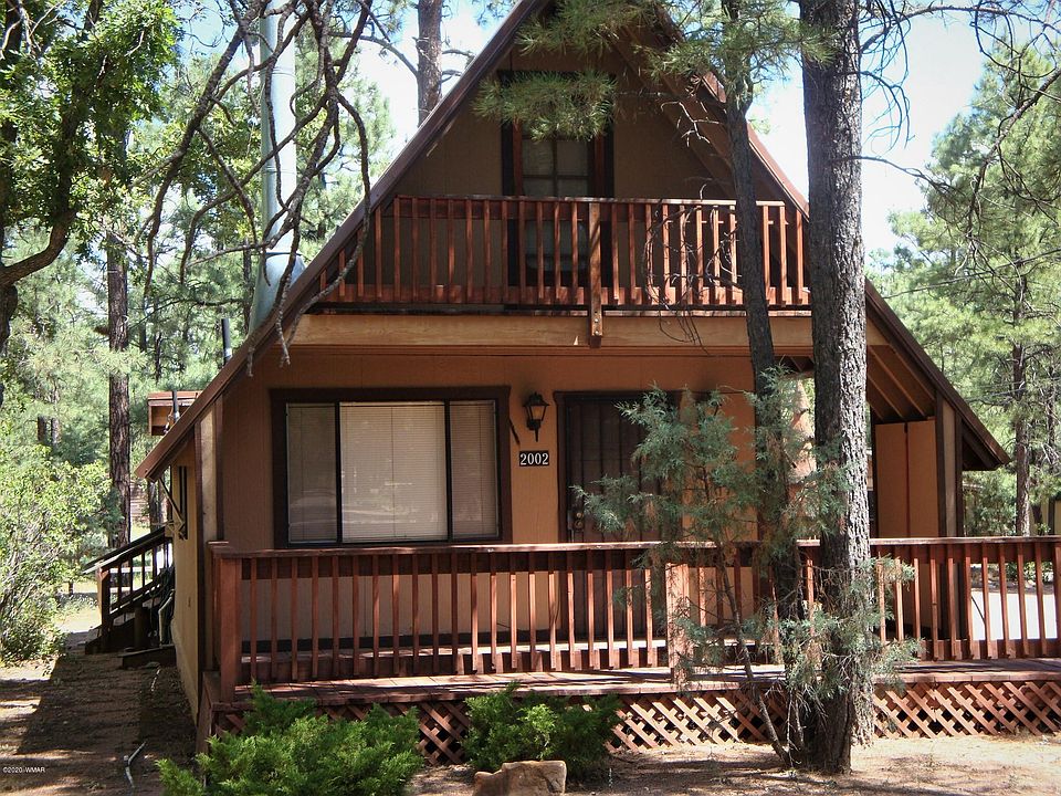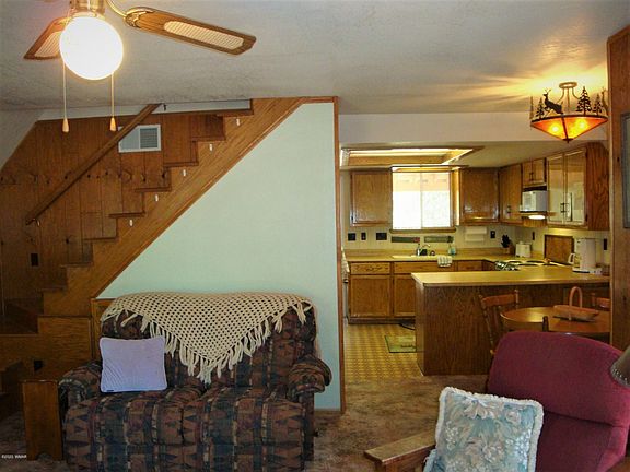 This modified A-Frame has more downstairs living space than most A-frames. Tucked amongst the trees where you can relax and just enjoy the good life. The detached 2-car garage is being used as additional living space and off road vehicle storage.Whether you use as short term get-away or hungting/fishing cabin or get togethers.The woodstove heat and a ETS heating system make it cozy warm in cooler weather. The garage has pellet stove to use year round.Needs some TLC/updating but useable right away.