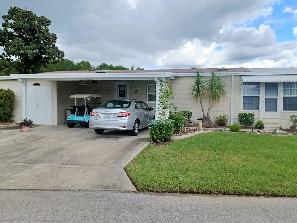 *This home is located in a 55+ resort style leased land community; age restrictions apply* This 1990 Palm Harbor 2-bedroom 2 bath home with a bonus room under heat and air giving you an additional 192 sq. ft. and an added a half bath. The kitchen has rolled vinyl flooring, tile back splash, and snack bar. With carpet throughout the living areas and bedrooms, the spacious bonus room with vertical blinds and a water view. A new roof was installed in 2018. The addition overlooks water and the front gardens gives this home great curb appeal. Listing details are provided by homeowner and are not guaranteed.