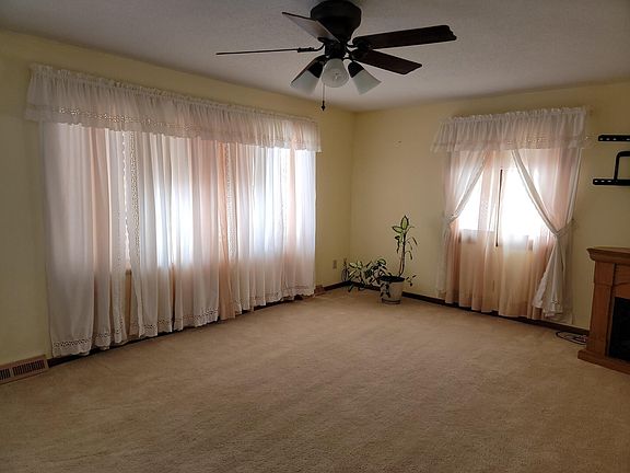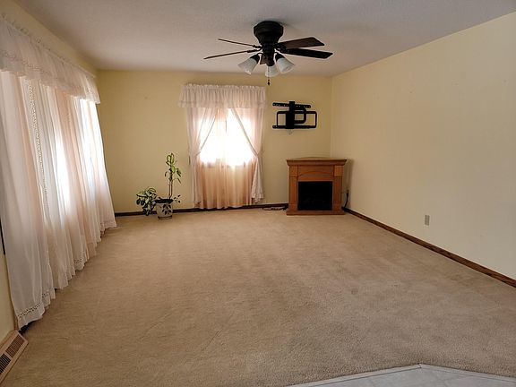• Description: Carpet, fireplace, corner hutch, ceiling fan