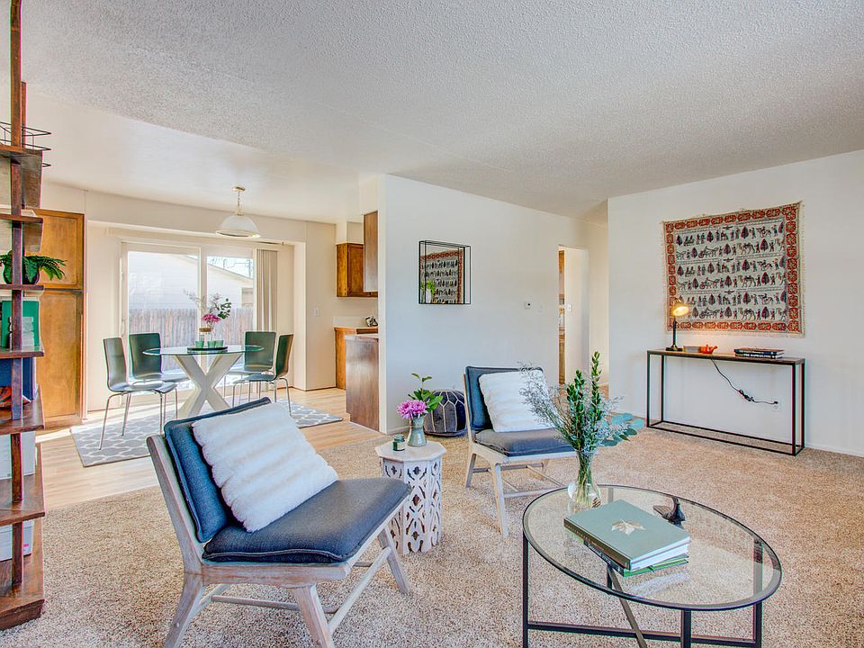 Multiple offers, all Highest & Best in by 12noon on Friday 02-01 & Seller to decide by 5PM. Open concept-beautifully remodeled/clean-move in ready! *Great features! Mountain views/west facing, finished Bsmt. 5 Bdrms (some don't conform) new carpet, paint, faucets, garage dr opener, blinds, cabs in baths, convenient wood lam.flrs, 2 F/Ps (brick & flagstone), A/C, LRG shed & fenced yard, BIG Master INCL: First American Home Warranty! Convenient location & Oversized gar. More parking - north side!