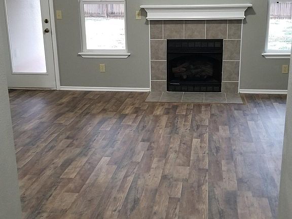 Newer paint and wood-look plank flooring. Fireplace; newer house with lots of storage. Close to the neighborhood pool. Includes a stack washer and dryer, 2 car garage, privacy fenced back yard. Covered back porch. Kitchen includes a nice range-oven, microwave and plenty of cabinets. A refrigerator can be added for a little extra. Ceiling fans in master bedroom and living room. Some pets allowed with extra deposit and $25 pet rent. No smoking inside. Small dog deposit is $500. Cat deposit is $300. Monthly pet rent is $25. A six-month lease would be an extra $100 per month.